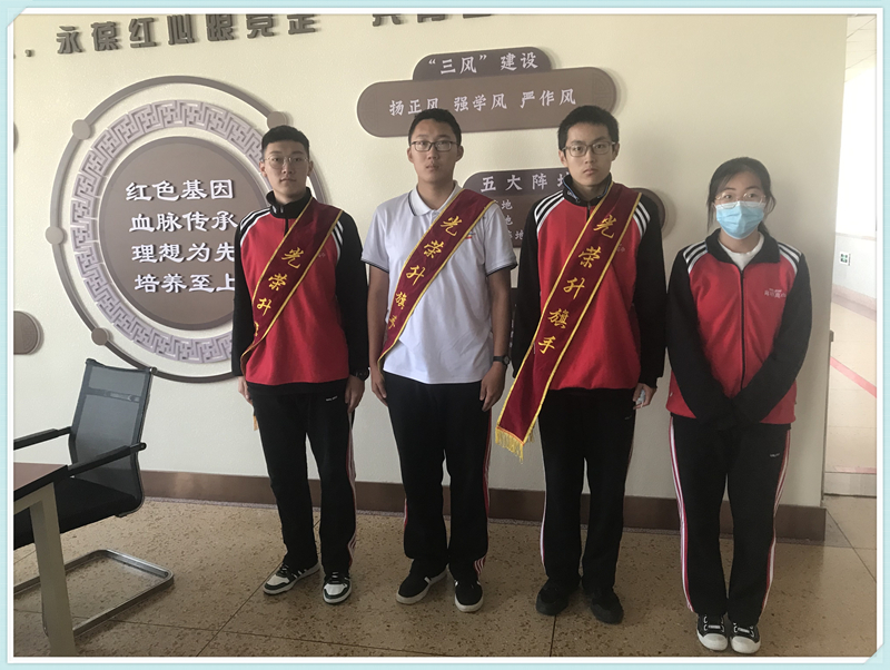 升旗手刘东瑞同学,刘东瑞同学在高三四班担任数学课代表一职。平日里他严格要求自己,以身作则,积极完成老师布置的工作。他为人诚恳善待他人,学习自主认真,严格要求自我。“一分耕耘,一分收获。”愿他心怀梦想,一朝尘净光生,照破山河万朵。