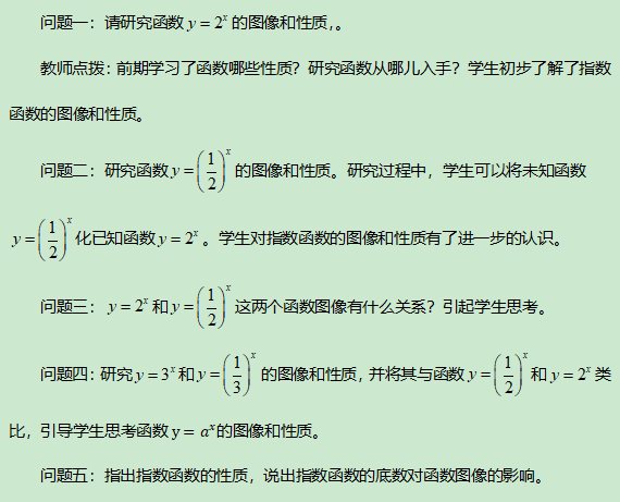 惠老师所作的《指数函数的性质与图像》一课,准确的诠释了“情境导入+问题探究”式教学模式。