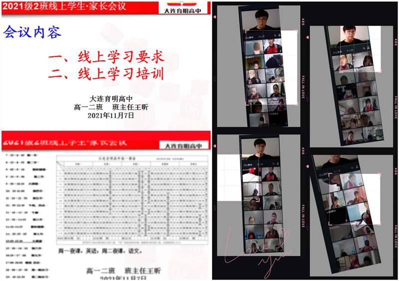 2021年11月8日,突降的寒潮打乱了大连市人民的生活节奏,按照辽宁省教育厅下发的通知,为确保全体师生安全,大连市中小学居家线上学习两天。11月9日,大连市新冠肺炎疫情防控总指挥部办公室印发通知,全市各幼儿园、小学、初中、普通高中学生即日起暂缓入校。育明高中及时制定工作方案,强化疫情防控责任担当,严格落实“四方责任”“四早”要求,多措并举严防校内聚集性疫情。高一二班在班主任王昕老师的带领下,有条不紊地开启了非常时期的线上学习与生活模式。