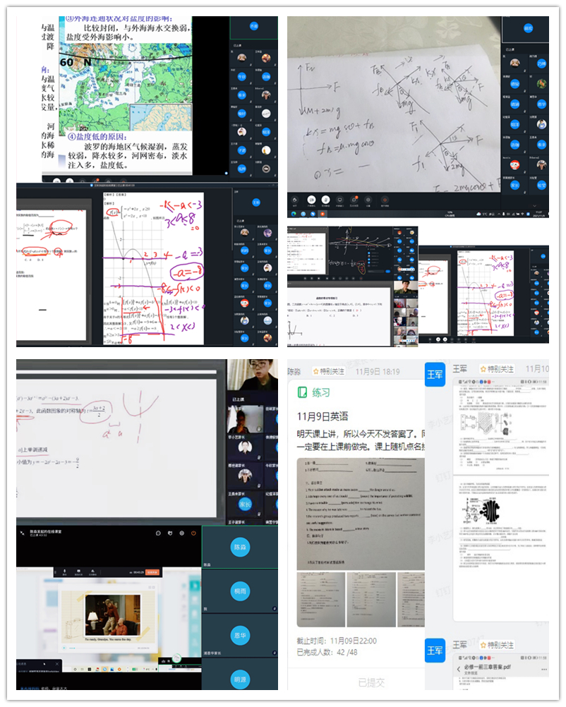 由育明高中优秀教师组成的高一二班教师团队,在这个非常时期更加联袂齐心。为保证学生线上听课质量,不断试课,不断改良;为激励学生学习动力并及时收到教学反馈,对布置的作业进行当天检查和细致批改;为保障育明高中学子的居家学习质量,提供了线上随时辅导答疑服务。