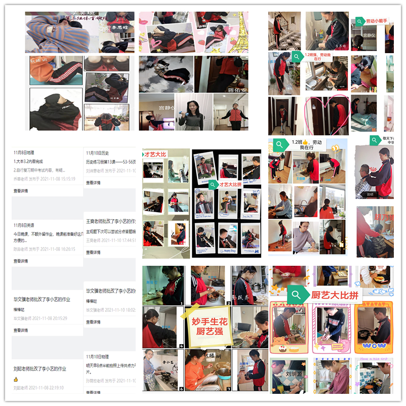通过科学管理与统一部署,班级合理推进着学生们的居家体育锻炼、才艺展示、美德教育等活动。同学们劳逸结合,全面发展,科学安排每天的学习与生活。既调整了居家心态丰富了成长之路,又激活了免疫力增强自身抵抗力。二班人切实养成了健康、积极的生活习惯。