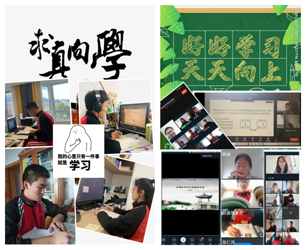 班级有全员参加的大班会,还有班主任分组参加的面对面的小班会,有班主任组织的班级会议,也有班长组织的自习会议。在不同种类的班会中,同学们彼此交流分享学习经验,学习方法,更多的是沉默而专注的自习。班主任组织班会时总是用幽默风趣的语言,生动形象的比喻向我们传授学习和生活上的经验和知识。也帮助我们疏导了因宅家而产生的一些情绪上的问题。班长召开的班会大多以视频会议形式出现,大家纷纷打开摄像头,看到彼此久违的笑容,冰冷的镜头前多了几分暖意。在这样艰难的时刻,同学们的感情通过班会的形式加以增进,也增强了一班整个大集体的凝聚力。这是班级与众不同的地方,也展示了一班人团结积极向上的精神风貌。