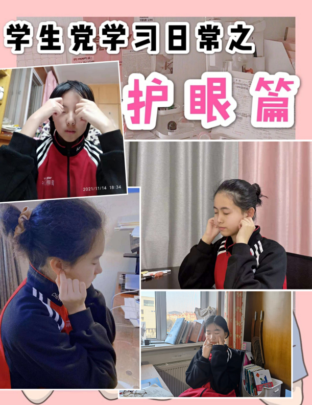 “眼睛是心灵的窗户。”学习之余,同学们不忘放下手中陪伴已久的笔,闭上眼睛端坐桌前,随音乐的节拍认真做眼保健操。爱眼护眼始于心,科学护眼践于行。
