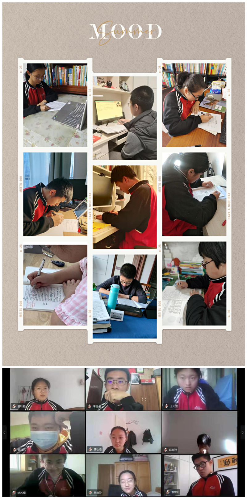 “虽不能至,心向往之”,就这样,我们开启了丰富多彩的“云生活”:一方小小的屏幕不仅装得下风花雪月和圆锥曲线,也担得起琴棋书画与柴米油盐,让我们在家里也能与老师同学相逢。