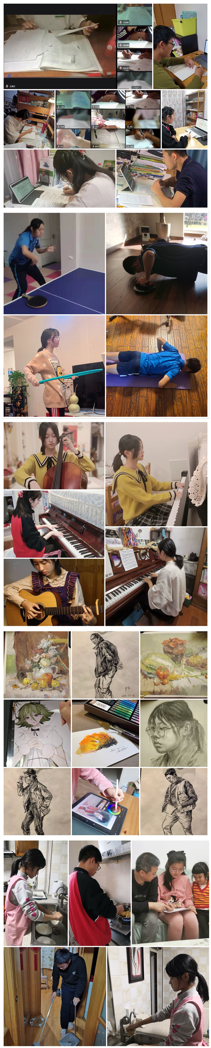 高二十一班同学即使被病毒阻挡在家中,但他们仍然努力学习,坚持运动,做家务,练才艺,“德智体美劳”全面发展,在这变局之中,他们随机应变,找到了平衡学业与生活的独门方法。