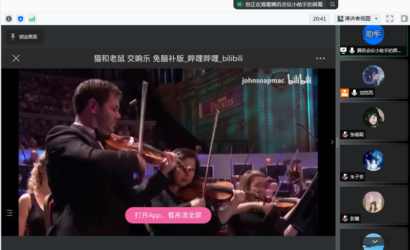 管弦乐团转为线上活动后,社长组织大家一起欣赏国内外管弦乐团与交响学团的演出。每周一次,虽然只有半个多小时的时间,但是大家通过这种方式了解了真正的乐团的结构、氛围、场景布局,同时通过乐团演出时出现的错误检讨自己,是否在平常练习中会出现这样的错误以至于日后在学校乐团排练时影响了排练进度。当然,欣赏美妙的管弦、交响乐也是在网课期间一种不错的放松方式,能够缓解大家的精神疲惫,还能陶冶情操。