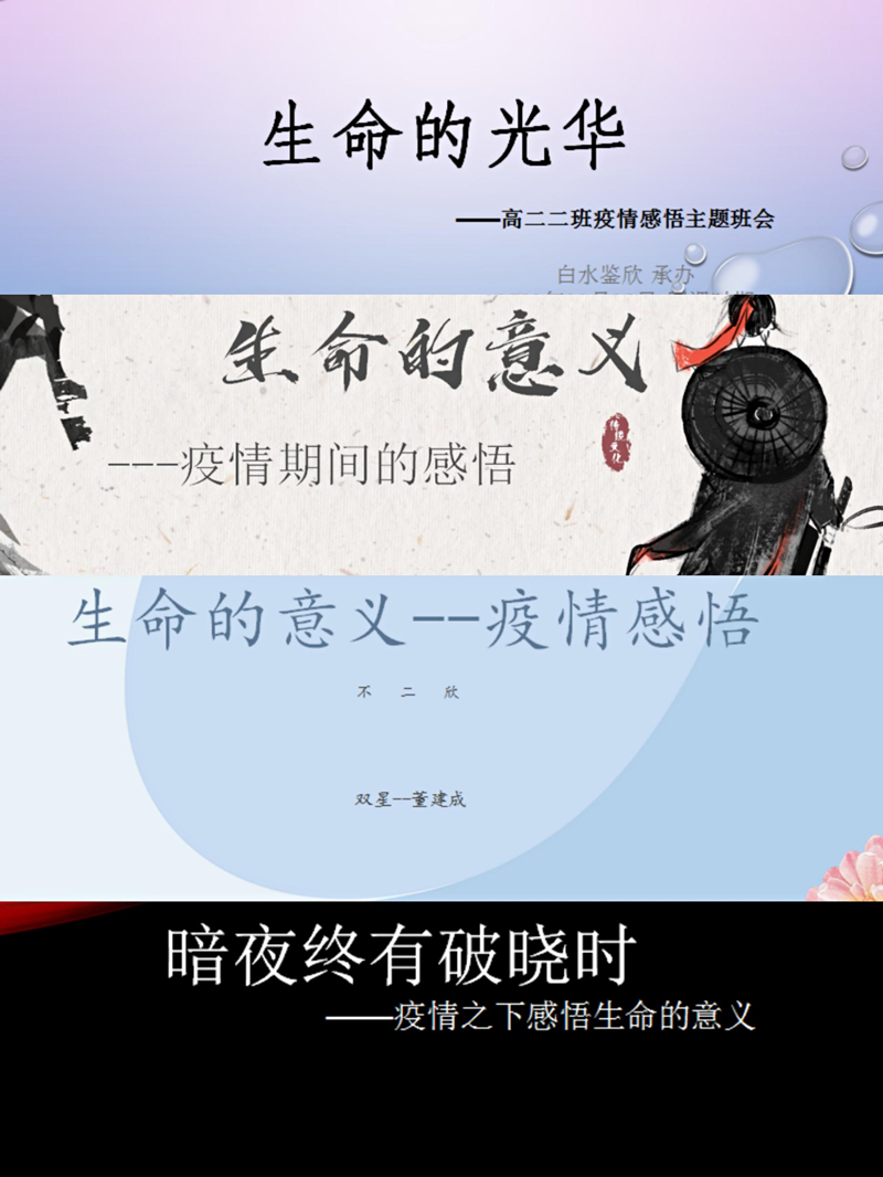 突如其来的疫情,让一切仿佛回到了2020年:我们又戴上了医用口罩,课堂再次搬到了线上,街上也失去了往日的车水马龙和灯红酒绿。那些感人的画面再次浮现在我们面前:隔离病区里,为抢救生命而奔忙的医护的身影;为一次次的核酸检测而冰天雪地里坚守的志愿者;为我们精心准备一堂堂生动的线上课而辛勤备课的老师们……这让我们每个人停下来思考生命的意义。在“生命的意义”主题班会上,小包子们积极发言,“奉献”与“感动”一次次触及心灵,最后班会以“走出舒适区”收尾,给予小包子们线上学习生活以勉励。