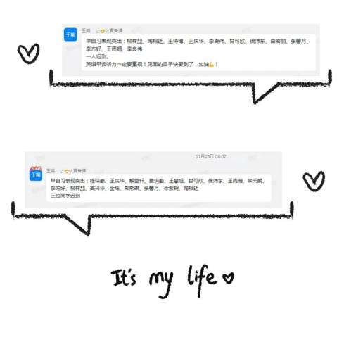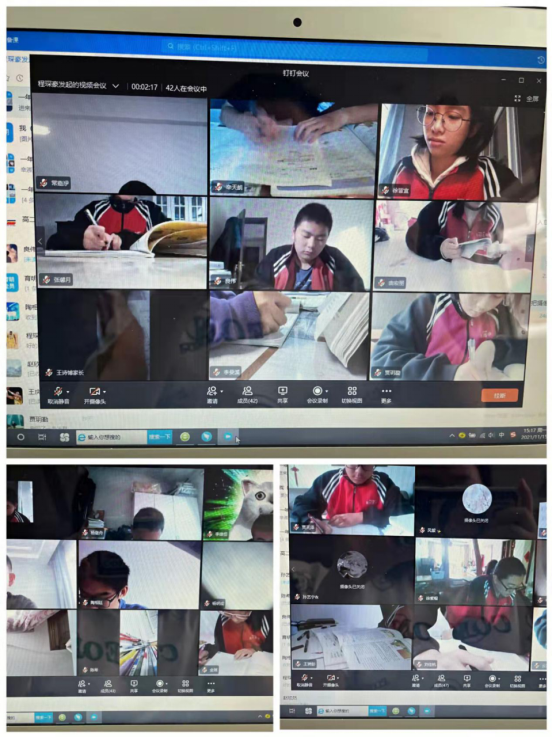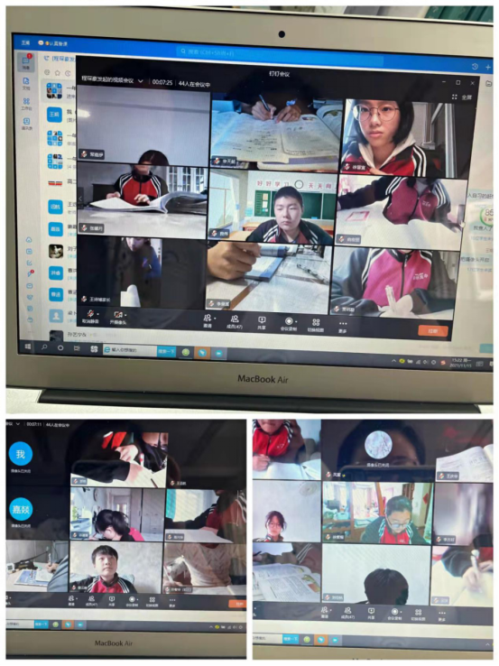 “一年之计在于春,一日之计在于晨。”早读,两位班长轮流开启视频会议。每至周三和周五,当天的值日班长会统一播放英语听力。听着扬声器中传来的电子音,同学们拿出考试的状态,认真做着听力题,仿佛坐在学校内。班主任王朔老师每天早上与我们一起进行早读,督促同学们打开摄像头,并根据同学们的不同表现,在班级群中表扬早读优秀的同学,提醒迟到的同学尽快进入早读状态。在王朔老师的带领与监督下,同学们能做到在学校和在家一个样,上网课与线下课一个样。