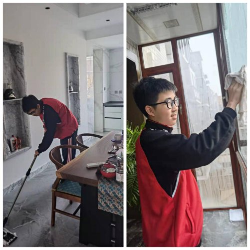 课余时间,在班主任老师的号召下,同学们拿起扫帚,走入厨房,帮助父母进行家务劳动。在课余时间也承担了家庭的一份责任。感恩每日陪伴我们的父母,感恩每天督促学习的老师,感恩一起在屏幕前奋斗的同学。