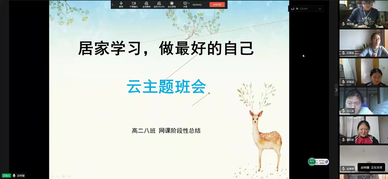 “我们是学生,疫情期间我们能为抗疫所做出的贡献的只是乖乖居家学习,不出去添乱。”这是老师们一直提醒我们的话。二年八班全体秉持这一信念,主动参与“云课堂”上学模式,在家不仅要学习,也要坚持锻炼身体,所谓“康健之心灵,源于康健之体魄。”上下午大课间操按时进行,我们八班的同学们积极“放飞理想”,彰显“青春魅力”,强身健体来对抗病毒。眼操自然也不能落下,49名同学打开会议,一起做眼操,避免用眼过多带来的视觉疲劳。班主任赵艳璧老师一直陪伴着我们,从早自习的开始到晚自习结束,始终有她的鼓舞与体谅。“同学们一天学习辛苦啦,放松一下吧,早点休息吧。”这是每次晚自习结束她对我们说的话。一根网线连接着无数人家,也连结了我们的心。疫情拉开了人与人之间的距离,却缩短了我们心与心之间的距离。共同抗疫,众志成城,我们不会被打败!