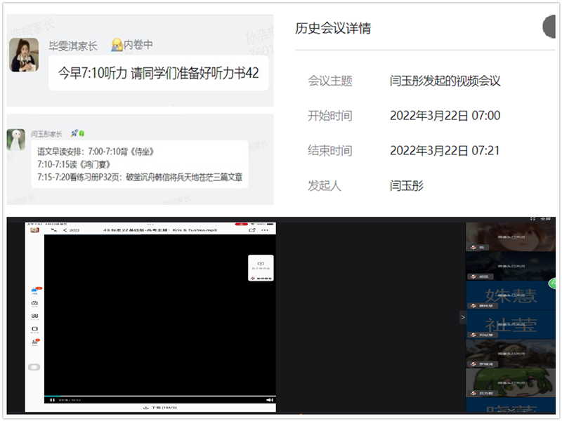 晨光熹微,早读相伴。百家讲坛丰厚知识底蕴,外语听力回响你我耳畔。PPT上设置好的每日名言激励人心,提前布置好的任务提高效率。在线互动,且探讨鸿门一宴人物特点;情景默写,亦温习经典佳作妙句佳语。美好一天从早读开始,奋进的人生从自律启航。