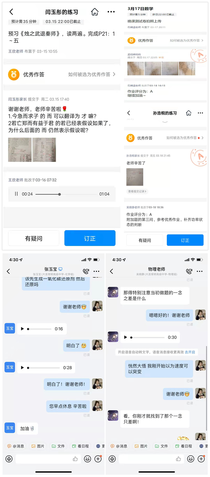 他们批改作业既有鞭策,又有鼓励!