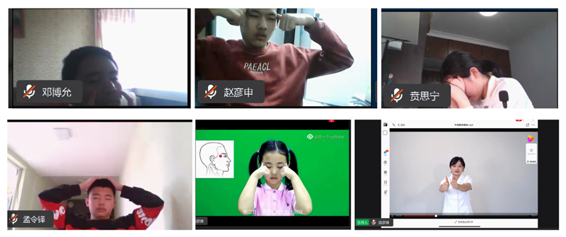 云端学习,保护视力成了最重要也是最艰巨的任务。每天上午下午的眼操,同学们从不缺席。