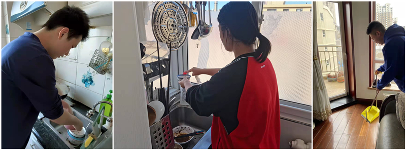 “黎明即起,洒扫庭除,要内外整洁。”居家期间同学们自觉帮父母分担家务,积极参与劳动,用实际行动传递孝心。将德智体美劳“五育并举”展现在生活细节中。