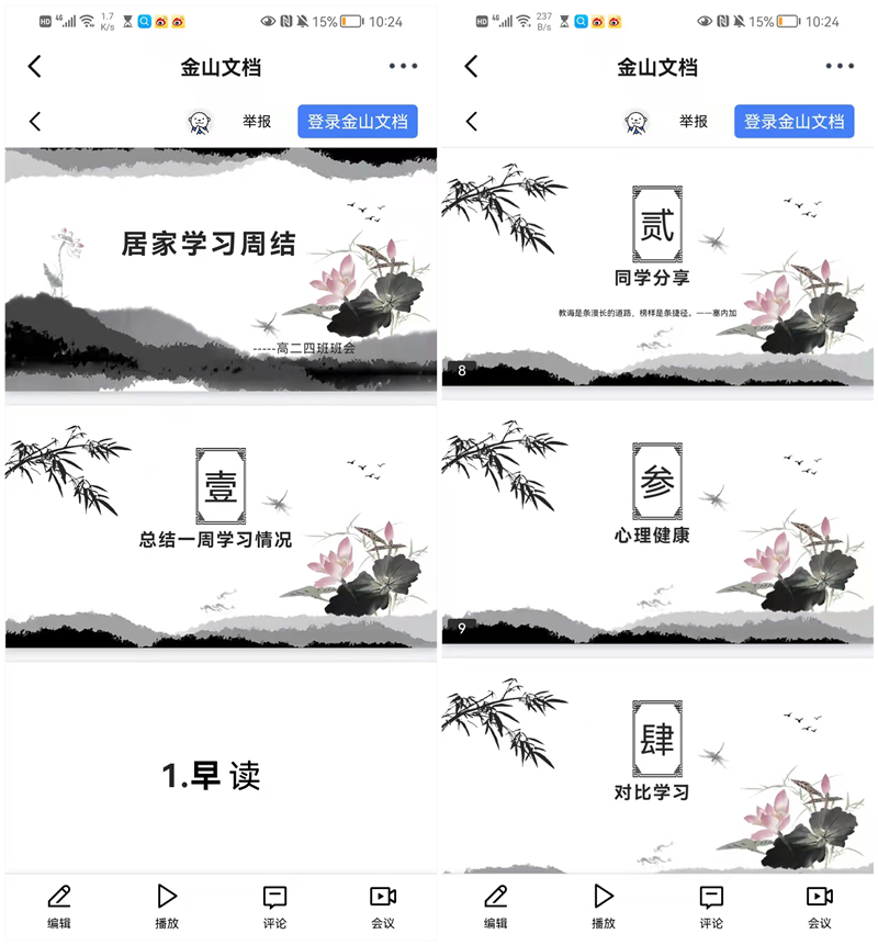 为同学更好地适应线上学习生活,高二四班定期举办学习经验交流会。每周三周五,都会有三位同学分享他们线上学习过程中的心得和体会。他们举办这样一个活动,不仅仅是为了交流经验,更是为了同学们完全适应新的学习环境,树立居家学习的良好心态。在这系列活动中,相信每个人都感受到了距离阻隔不断的同学情、师生情。