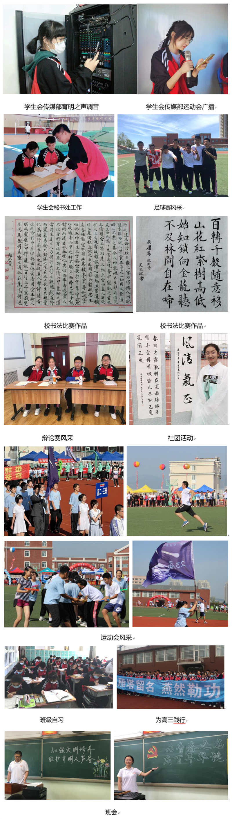 运动会上拼搏的汗水,是我们的热情:舞台上多姿的表现,是我们的风采:竞赛中优异的成绩,是我们的智慧。高二三班的同学们在学校丰富多彩的活动中崭露头角,各显其能。