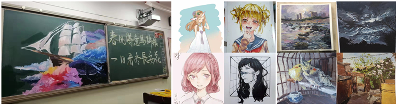 送别高三时美特同学绘制的板报、部分美术特长生作品