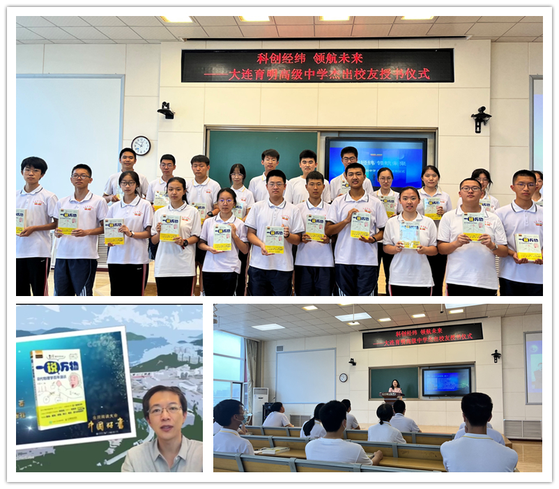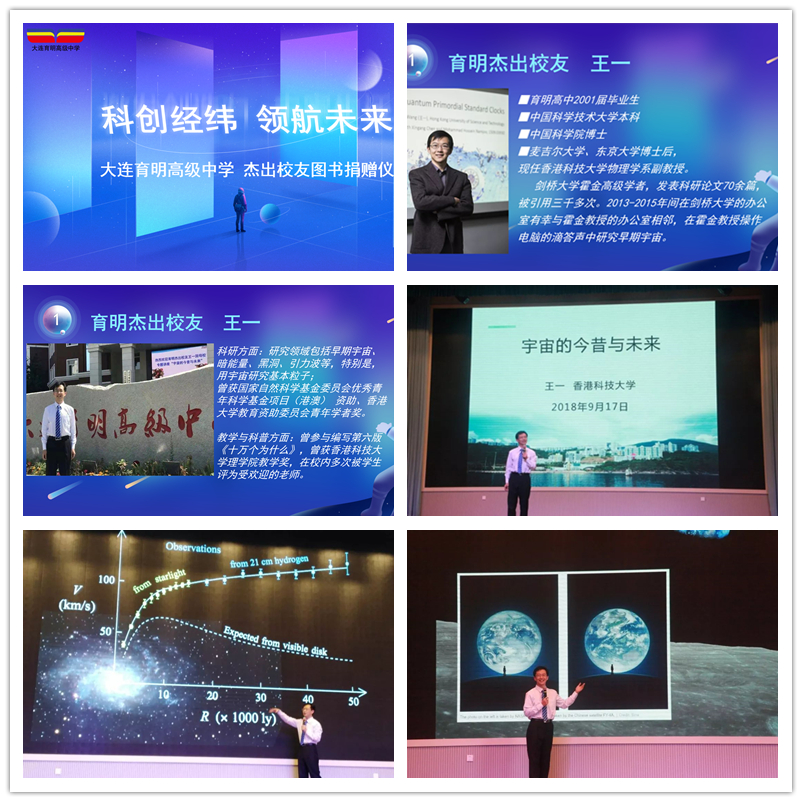 与霍金共事,心怀宇宙天地宽;出佳作一本,建功青春育明人。衷心感谢王一校友,将科技创新的种子播撒在孩子们的心田,将点燃青少年科技创新能力的火把交予了新一代育明人。大连育明高级中学必将汇聚起强大的物质和精神力量,努力提高学生科学素质,造就新时代创新人才,全面开创我校科创经纬教育的新局面。