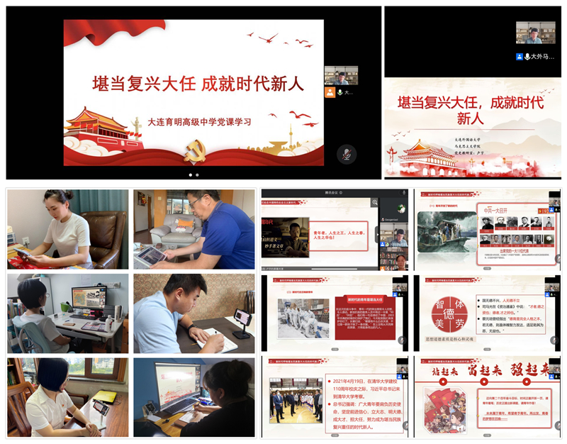 为推动习近平新时代中国特色社会主义思想进校园,敦促党员教师认真学习《习近平谈治国理政》第四卷,2022年9月13日下午大连育明高级中学党委利用腾讯会议在线上开展了一次生动、热烈的党课学习。