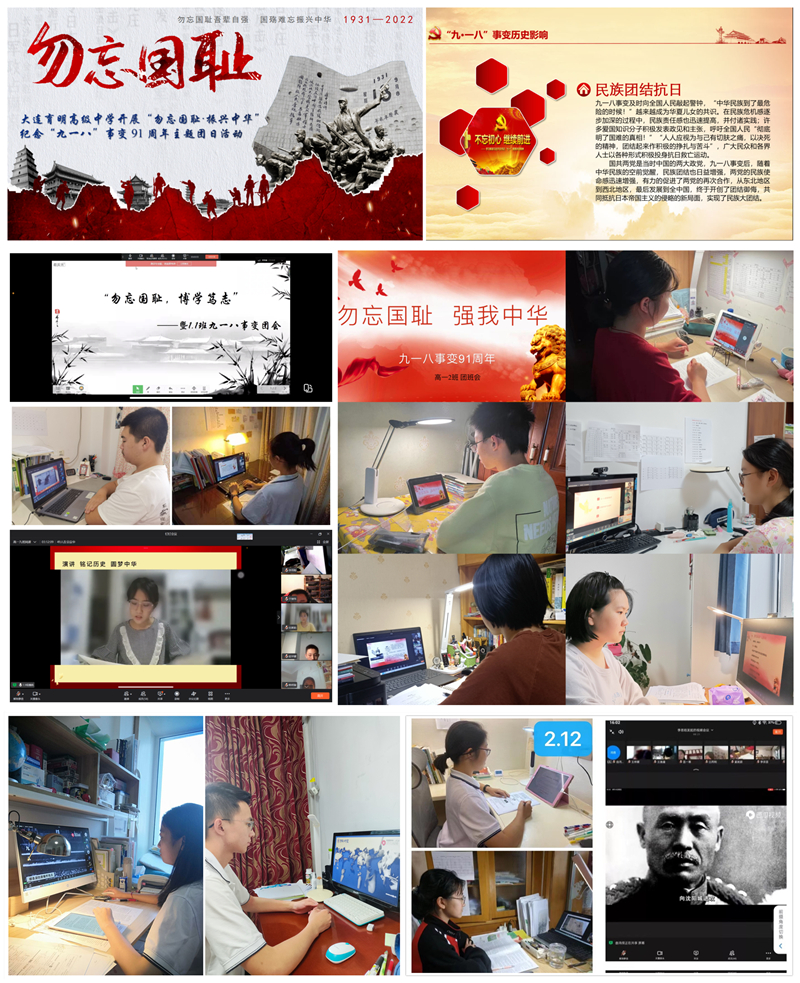 为纪念“九一八”事变爆发91周年暨第22个全民国防教育日,引导广大青年学子大力弘扬以爱国主义为核心的伟大民族精神,强化忧患危机意识,传承红色基因血脉,增强全民国防观念,坚定中华民族伟大复兴的信念。9月16日,大连育明高级中学团委组织各年级团支部开展“勿忘国耻 振兴中华”纪念“九一八”事变91周年主题团日活动。