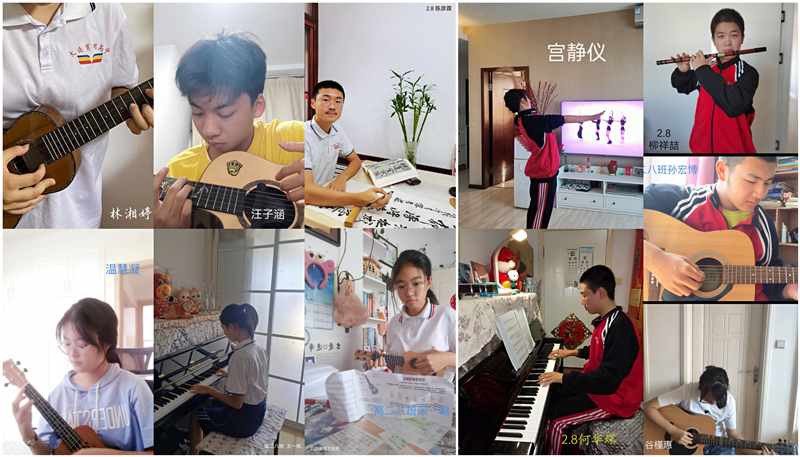 “十二门前融冷光,二十三丝动紫皇。”课后,同学们以吉他为生活弹出新的旋律,以竹笛吹出生活新的节奏,为生活赋予新的色彩,从另一面角度折射出网课生活之美与自由!