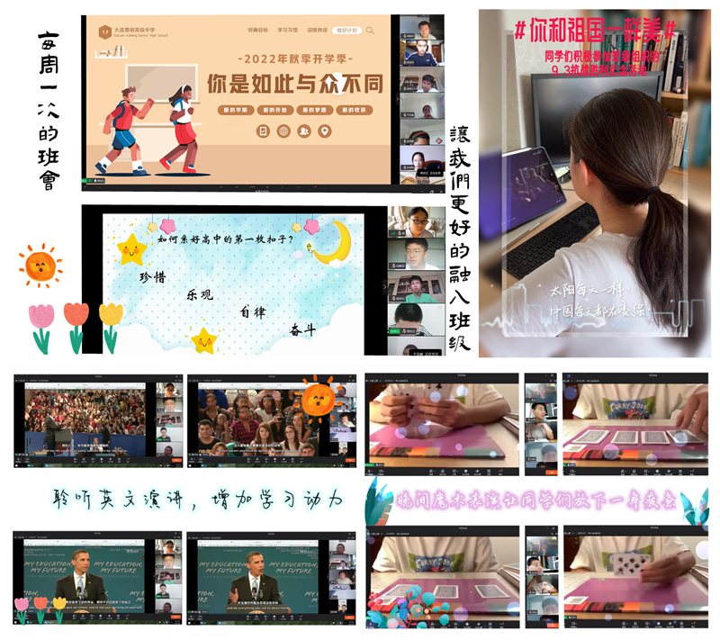 “系好高中第一粒扣子”的主题班会从班长的娓娓道来开始,2022年这个金秋,有缘走在一起的我们迎来了好多第一次:从公众号庆祝抗战胜利77周年特别活动,到开放式的线上自我介绍;从竞赛兴趣的“选边站队”,到场场收获颇丰的课后交流;从云端体育馆劲爆旋律到高级维度上的化物生史地……这些第一次无一不是让人“元气满满”。