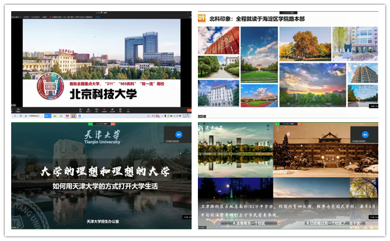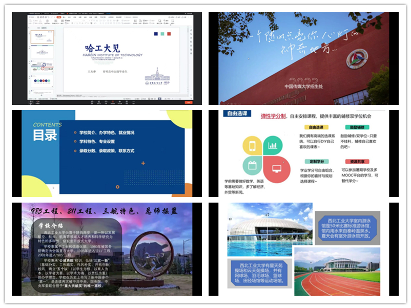 1月5日宣讲的大学,分别是被称作“工程师的摇篮”的哈尔滨工业大学,被誉为“传媒人才摇篮”的中国传媒大学,获得双重研究性认证的香港科技大学,金融硕士云集的对外经济贸易大学,唯一一所同时发展航空航天航海工程教育的西北工业大学,中国高等师范发祥地的南京师范大学,为国家知识创新工程送入诸多人才的中国科学院大学。本次云宣讲活动观看直播人数达760人, 深受同学们的欢迎和好评, 十一位学长学姐分别从不同角度为同学们剖析了不同专业的特点与优势,给同学们在报考大学及专业方面提供了很好的借鉴与参考。