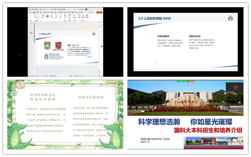 1月4日,来自浙江大学、国防科技大学、中山大学、华东师范大学、武汉大学、中央美术学院、北京科技大学、天津大学的各位学姐学长从校园、学习、学科和生活等各个角度,进行了详细的介绍。宣讲内容丰富、透彻、全面,为学弟学妹们后续的生涯规划提供了很大帮助。细致的讲解,也拉近了毕业生与在校学生的距离,为学弟学妹提供了许多有用的信息,点亮了他们的前行之路。