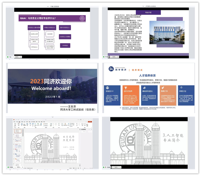 1月7日,来自同济大学,复旦大学,南开大学,北京中医药大学以及东北财经大学的优秀毕业生依次开始宣讲。他们从学院概况介绍到校园生活,从校园历史分享到知名校友,从高中学习剖析到志愿填报,从专业解读到毕业去向。各个宣讲团热情洋溢,在为学弟学妹们详细介绍的同时也衷心希望学弟学妹们能在高考中取得满意的成绩、考入理想的大学,私下,他们更是组建群聊解答疑惑,为学弟学妹们的未来提供有效的支持和鼓励。