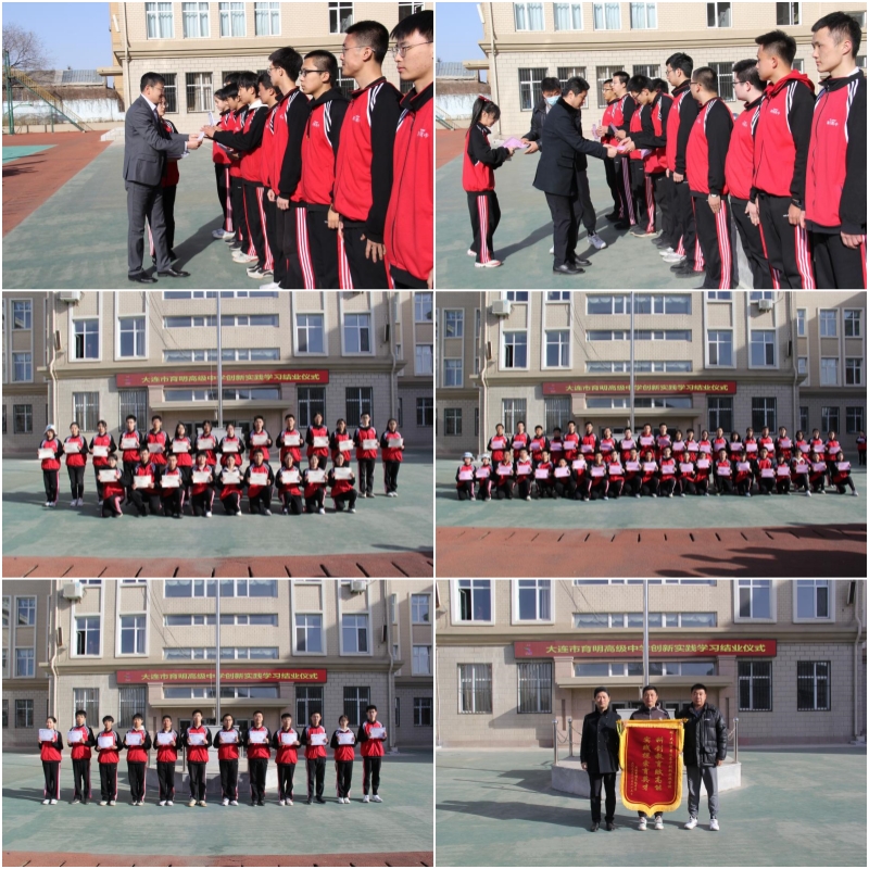 为期四天的创新实践学习在同学们的欢笑中渐近尾声,毕业典礼如期而至。首先,创新实践学校领导代表发言,对同学们为期四天的在校学习作出总结,寄语育明高中全体同学,表达了对同学们在日后学习和生活中发扬所学、坚持创新的期望与鼓励。接着,学校带队领导为优秀学员颁奖,在四天的学习与实践中,许多同学展现出了新时代青年的优秀品质与精神风貌,不负老师们的期望,认真负责地对待自己的工作。为创新实践学习的顺利进行贡献了自己的力量,更有诸多同学运用所学,不怕劳累,动手实践,活跃思维,施展才华,大胆创新。创作出许多优质作品,收获老师和同学们的好评。然后,班级代表上台领取毕业证书。最后,育明高中辛海泉主任为创新实践学校送上锦旗,表达了老师与同学们对创新实践学校衷心的感谢与祝福,也为同学们的创新实践学习生活画上了圆满的句号。