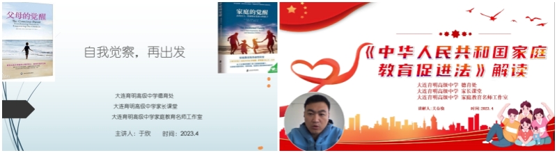 家校共育谱新篇,静待花开助成长。为进一步加强家校沟通、提升家庭教育能力,促进孩子身心健康成长,校园开放日活动临近尾声,学校安排关春骁老师和于欣老师分别为家长们做了《教育促进法解读》和《自我觉察,重新出发》的线上家庭教育指导讲座,在两位老师的指导下,家长对家庭教育、家校合作共育的重要性有了更进一步的理解,就如何做学习型家长、提升专业技能、成长为优秀的家长有了抓手。于欣老师带领的工作室已被列在第二届大连市中小学家庭教育名师工作室重点指导名单之中。
