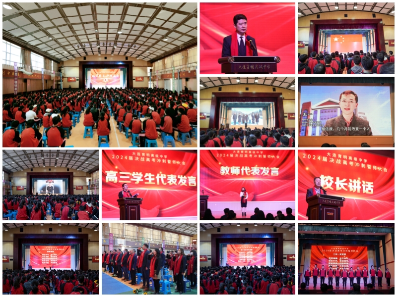 为昂扬斗志,振奋精神,续写育明人的辉煌篇章,我校于3月29日下午举办2024届高考冲刺誓师大会。高三全体师生在体育馆庄严集会,擂响高考冲刺的战鼓。校长张有林,副书记刘升,副校长陈德军、金辉出席本次活动,大会由教务处副主任辛海泉主持。