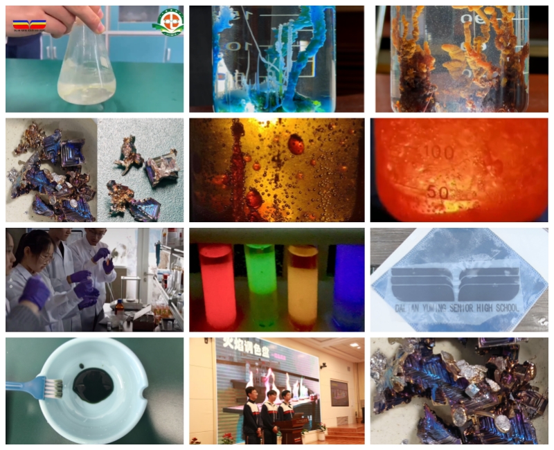 | 夏意初临,绿意盎然。刚刚过去的四月,第二届“挑战者杯”科技节化学学科主题活动如火如荼地展开了。本次活动由教学处和高一备课组策划发起,校学生会外联部承办,吸引了高一各班化学爱好者的热情参与。活动前期,各班报名选手积极准备,利用课余时间查阅相关资料,设计实验方案。在实验室内,选手们身着实验服,神情专注,小心翼翼地操作着实验器材,每一步都透露出对科学的敬畏与热爱。在高一化学组老师的指导下,同学们不断完善实验步骤,确保安全的同时,力求实验效果最佳,各种奇妙的化学反应纷纷上演,试剂瓶内绮丽魔幻的颜色变化与同学们热烈的讨论声交织在一起,形成了一幅青春与科学共鸣的美丽画卷,令人目不暇接。学生将实验过程录制下来,制作成精美的实验视频和实验报告。这些作品中不仅详细记录了实验步骤、观察到的现象,还深入分析了反应原理,展现了化学的奥秘与魅力。活动中,不仅有传统的经典实验,更有许多创新设计,不断激发起学生们对科学的浓厚兴趣和探索精神。