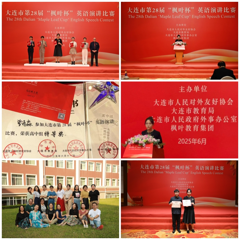 | 在6月11日落下帷幕的大连市第28届“枫叶杯”英语演讲比赛决赛中,我校高一十二班曾诗淼同学凭借卓越的英语素养与临场应变能力,一举摘得高中组特等奖。