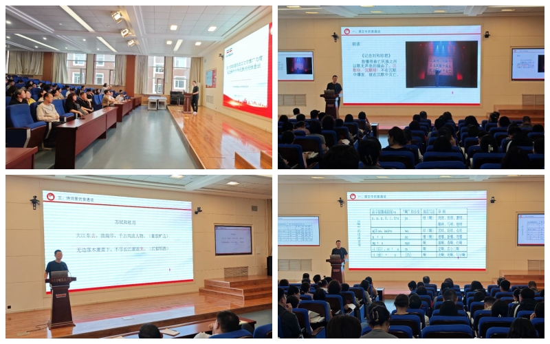 宣讲围绕本届推普周主题,从“扩大普通话使用广度”和“提高普通话发音准度”两个维度展开讲解。韩老师结合鲁迅《记念刘和珍君》中的经典语句,生动阐释了“语流音变”现象,并通过现场示范和音频播放,引导师生感受普通话语音变化的规律与美感。