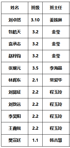 刘卓然 高三十班,班主任:姜姝琳