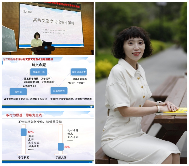 侯杏梅老师从“考情分析”“备考策略”“教学启示”三个维度,系统阐述了新高考背景下文言文阅读的命题趋势与教学应对策略。她指出,近年来高考文言文考查呈现出“题型稳定、内涵深化、教考衔接紧密”的鲜明特点,考查重点从“知识识记”转向“能力运用”,尤其强调在“教考衔接”中甄别学生的语文核心素养。