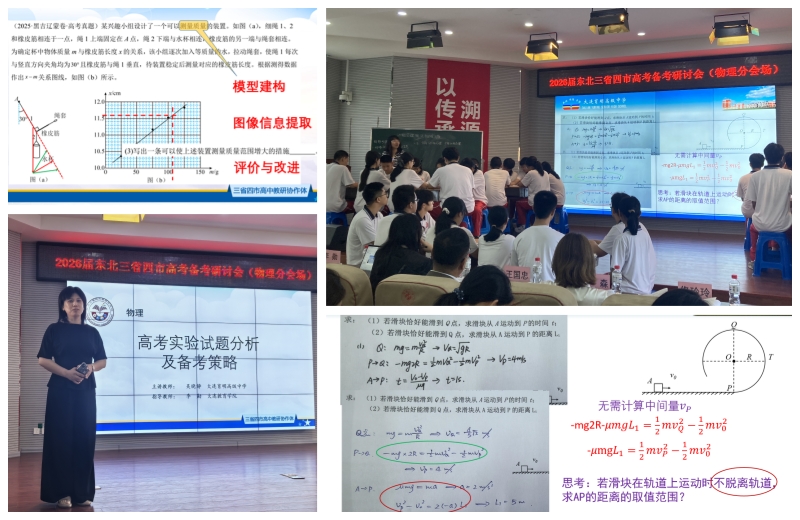 秋意正浓,沈水扬波。9月25日,2026届东北三省四城市高考备考研讨会在学术氛围浓厚的沈阳一中隆重举行,四地教育同仁共聚一堂,切磋研讨,共绘备考蓝图。我校物理高级教师刘璐璐在会上上了一节《动能定理解决多过程问题》的公开课,高级教师吴晓静在会上做了《高考实验试题分析及备考策略》的讲座,两位老师的表现赢得了三省四市教研员及与会教师的高度赞誉。