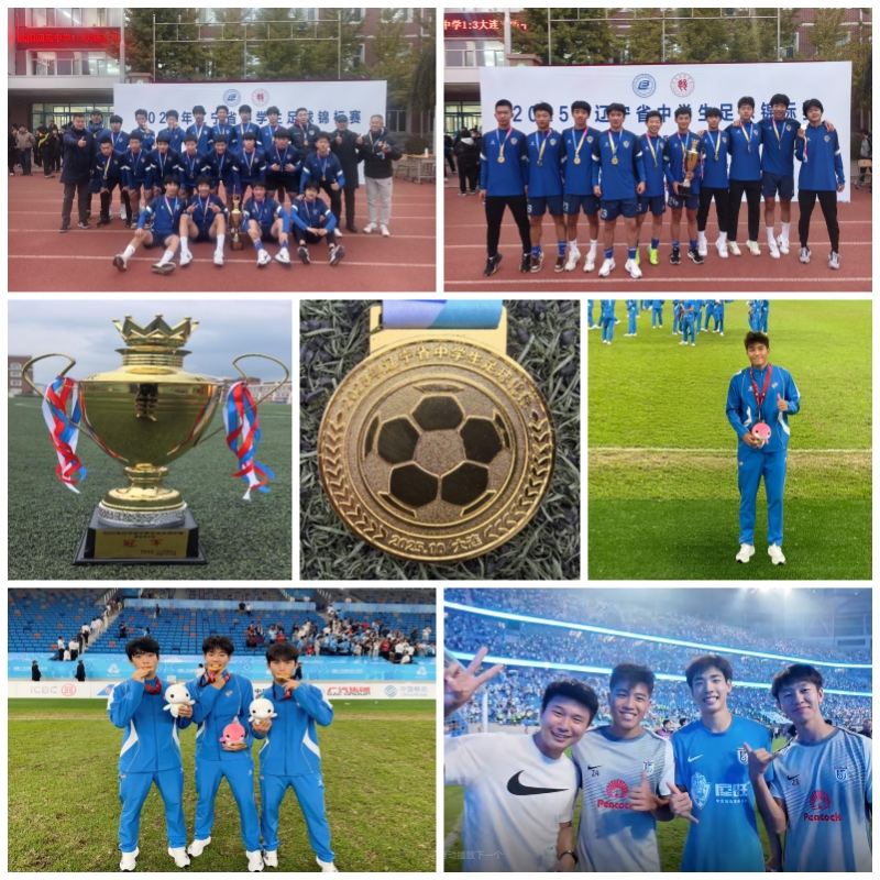 值得一提的是,比赛期间,我队的高三主力队员因参加全运会缺席,就是这支由高一、高二学子组成的队伍,在赛场上用汗水诠释了体育精神,用拼搏书写了青春传奇。他们不卑不亢、沉着应战,用扎实的技术、默契的配合和顽强的意志弥补差距,最终站上了辽宁省中学生足球锦标赛的最高领奖台。
