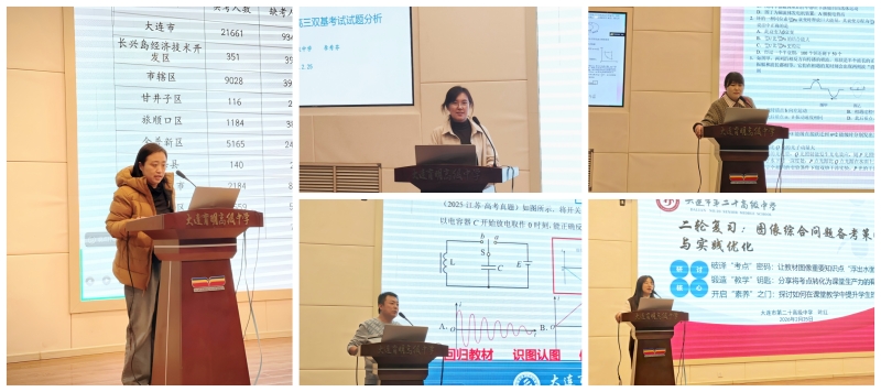 活动的高潮部分,由大连教育学院教研员李勋老师进行总结与引领。李老师对全市本次双基考试的整体情况,进行了全面、精准的数据分析,深入解读了试题的命题思路与考查意图,并对学生的答题情况、各题得分率进行了详尽的数据展示与归因分析。在此基础上,李老师高屋建瓴地提出了二轮复习的整体思路,明确了复习的核心方向与重点工作,强调要回归教材、夯实基础、强化能力、规范答题,为全市高三物理二轮复习备考工作提供了强有力的专业指导。